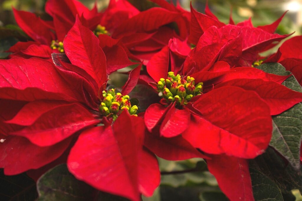 La Poinsettia o Flor de Pascua es una de las plantas más populares en Navidad. Sus hojas o brácteas rojas