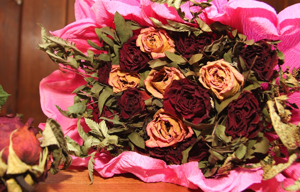 Un ramo de rosas secas, ¡decoración muy a la moda!