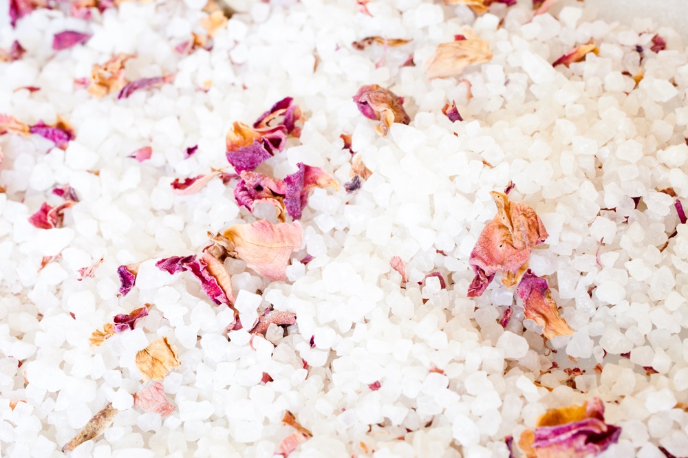 Mezcla los dos primeros ingredientes en un recipiente grande. Después, añade de 5 a 10 gotas de aceite esencial de rosa. Echa un puñado de la mezcla resultante en tu bañera y lista para disfrutar de un momento de relax.