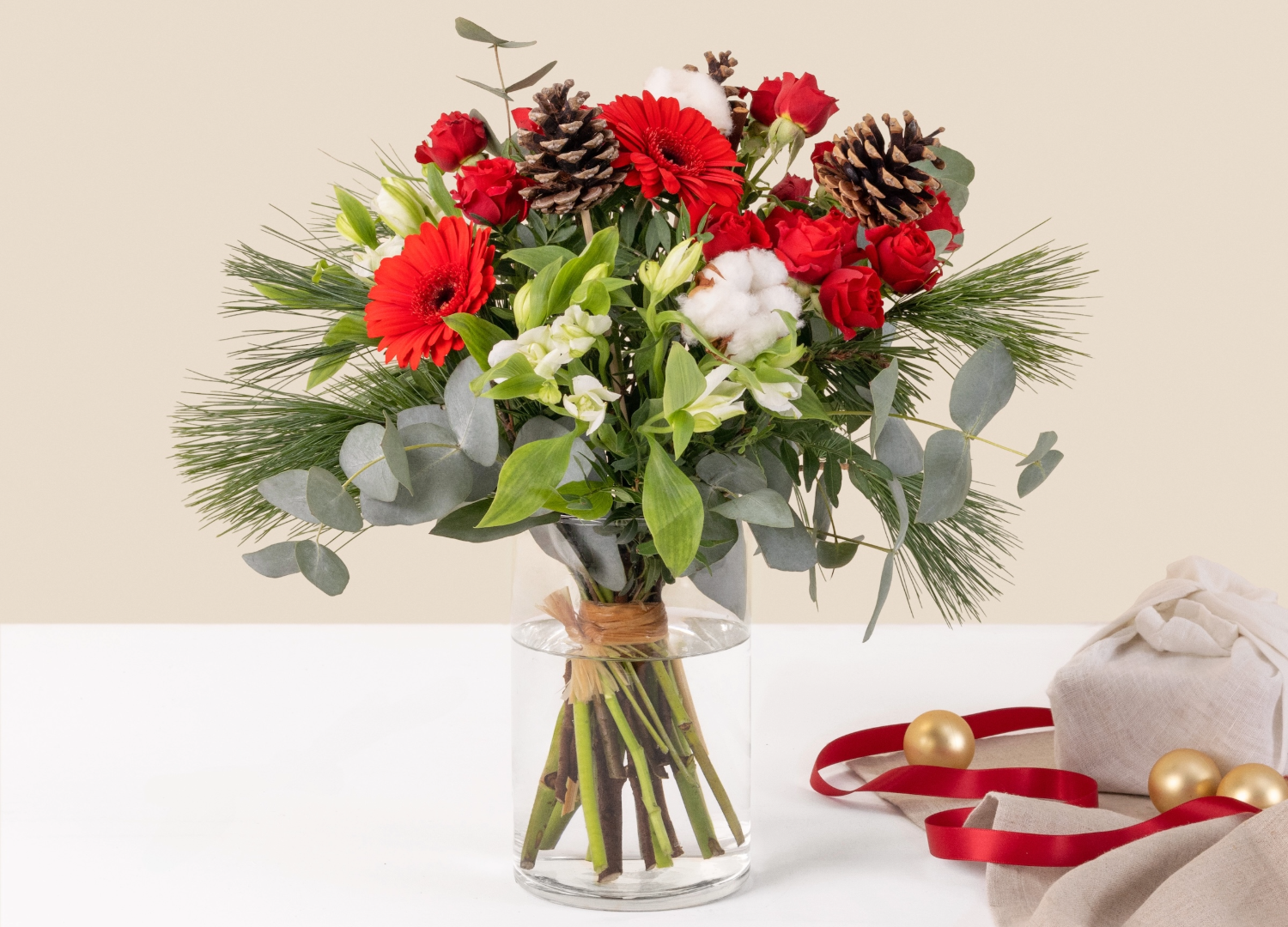 Un generoso ramo de flores invernales —como amarilis, eucalipto escarchado o tulipanes rojos— es un gesto atemporal. Una forma de decir “pienso en ti” sin necesidad de muchas palabras.