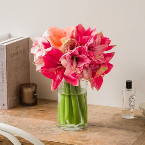 Si buscas un regalo original o simplemente decorar tu hogar con un toque de color, no te pierdas nuestra selección de ramos con amarilis. Estas flores grandes de pétalos vistosos y coloridos, similares a los lirios o las azucenas, son ideales para alegrar los días de invierno.