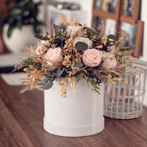 La ventaja de las rosas preservadas es que pueden conservarse durante varios años. Si quieres que tu rosa eterna dure más tiempo, procura no tocarla para no dañar sus pétalos o aplastarlos. A pesar del proceso de preservación, las flores liofilizadas siguen siendo delicadas, por eso recomendamos protegerlas de la luz directa muy intensa y de la humedad. Si las riegas o las sumerges en agua, es muy probable que alteres el tratamiento y se estropeen.